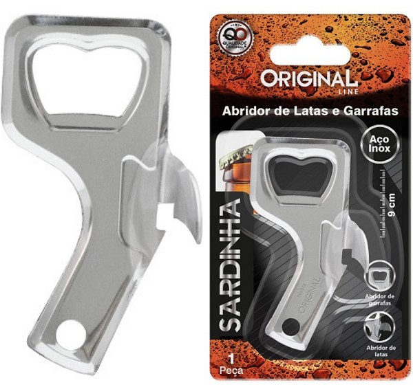 Abridor Latas Garrafas Sardinha 9cm Aço Inox Original (blister)
