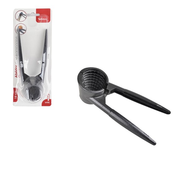 Abridor Champagne Quebra Nozes 18x5cm Preto Metal Wellmix