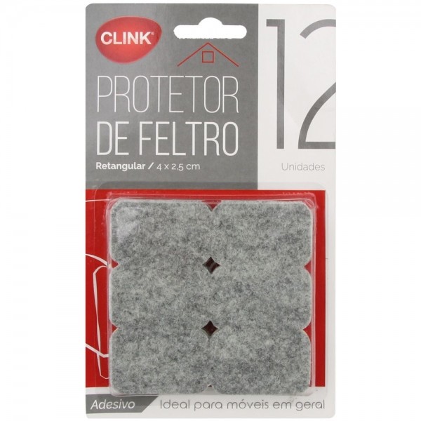 Protetor Móveis C/12und Feltro Retangular Adesivo 4x2,5cm Cinza Clink