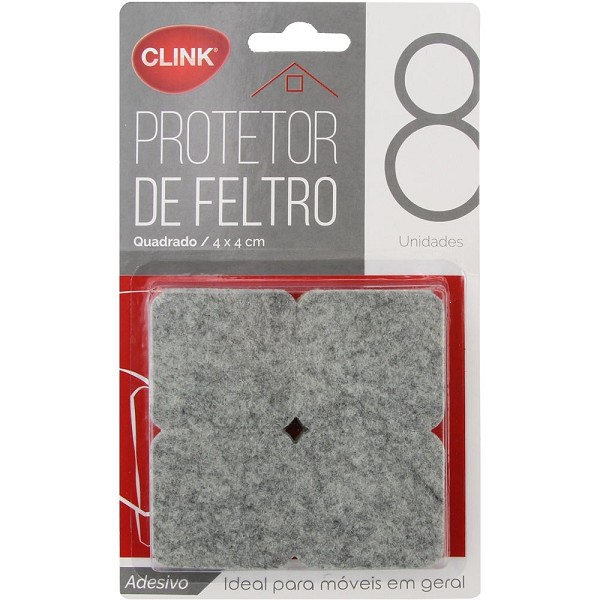 Protetor Móveis C/8und Feltro Quadrado Adesivo 4x4cm Cinza Clink