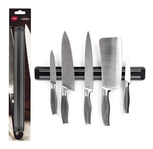 Barra Magnetica Facas Media Plástico Aço Inox 37,5x4,8x1,3cm Clink