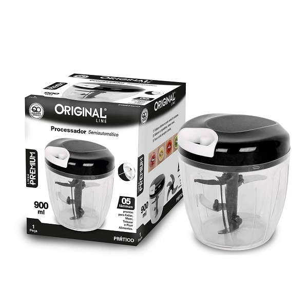 Processador Manual De Alimentos C/5 Laminas 900ml Aço Inox Preto Original
