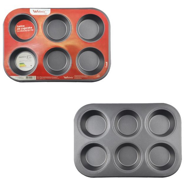 Forma 6 Cupcakes 26x18x3cm Aço Carbono Revestido Material Antiaderente