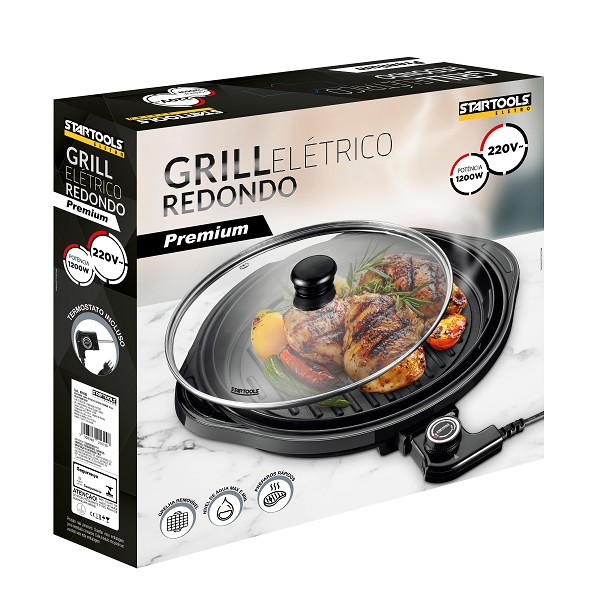Grill Eletrico Redondo Antiaderente 40cm 220v Preto 1200w Startools