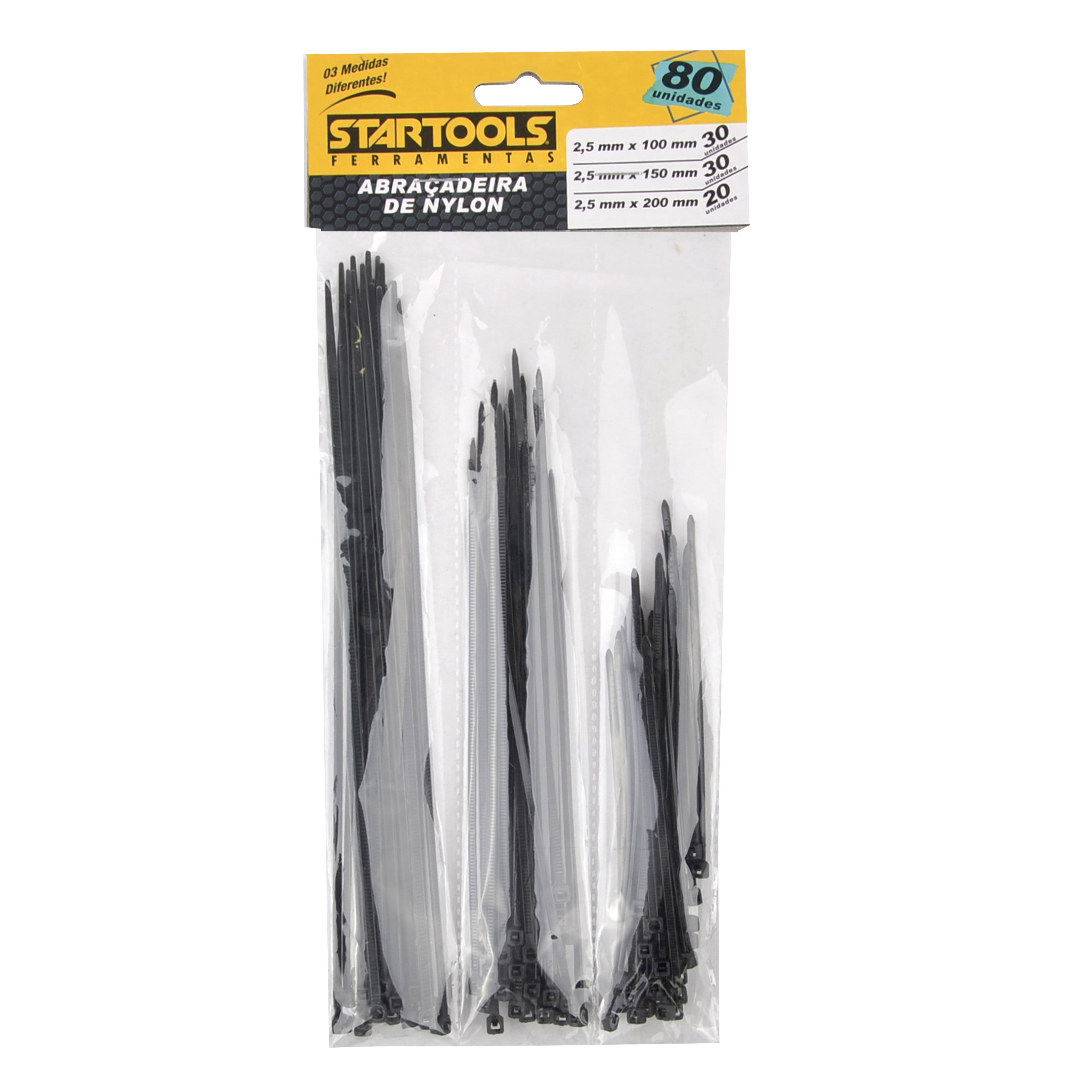 Abraçadeira Nylon 3 Tam 30pçs 2,5x100/ 30pçs 2,5x150/ 20pçs 2,5x200 Startools