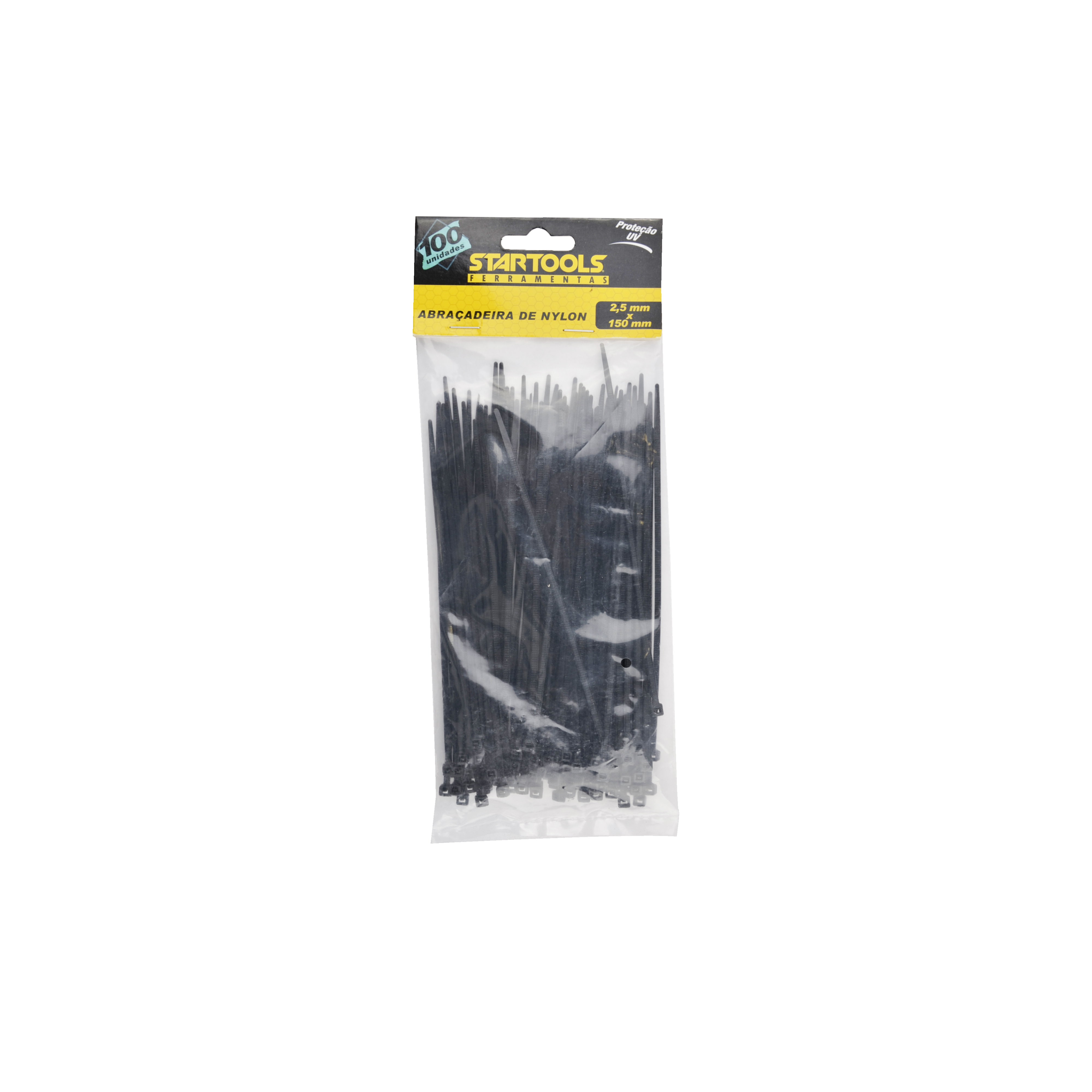 Abraçadeira Nylon Preta 2,5mmx150mm Pacote C/100un Startools