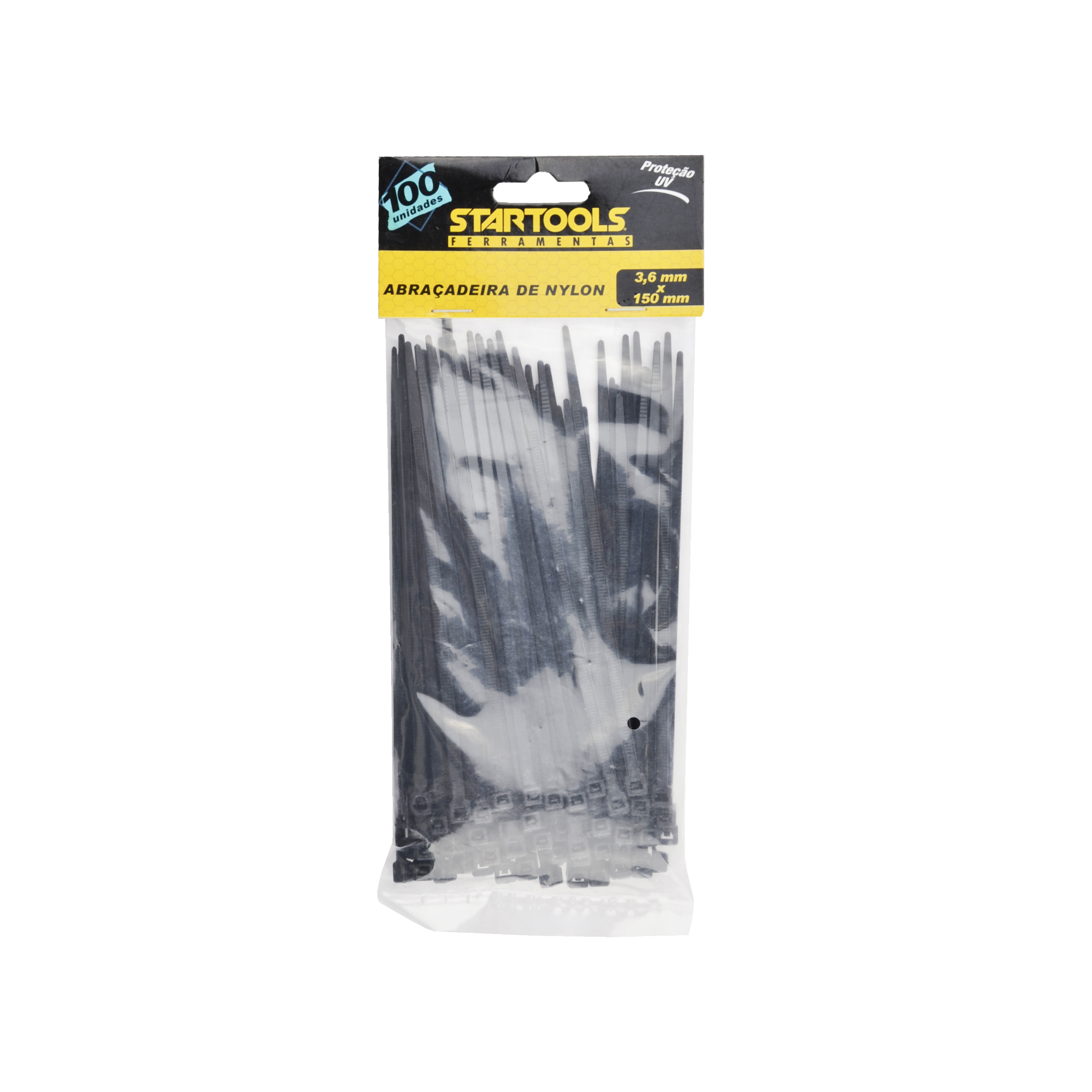 Abraçadeira Nylon Preta 3,6mmx150mm Pacote C/100un Startools