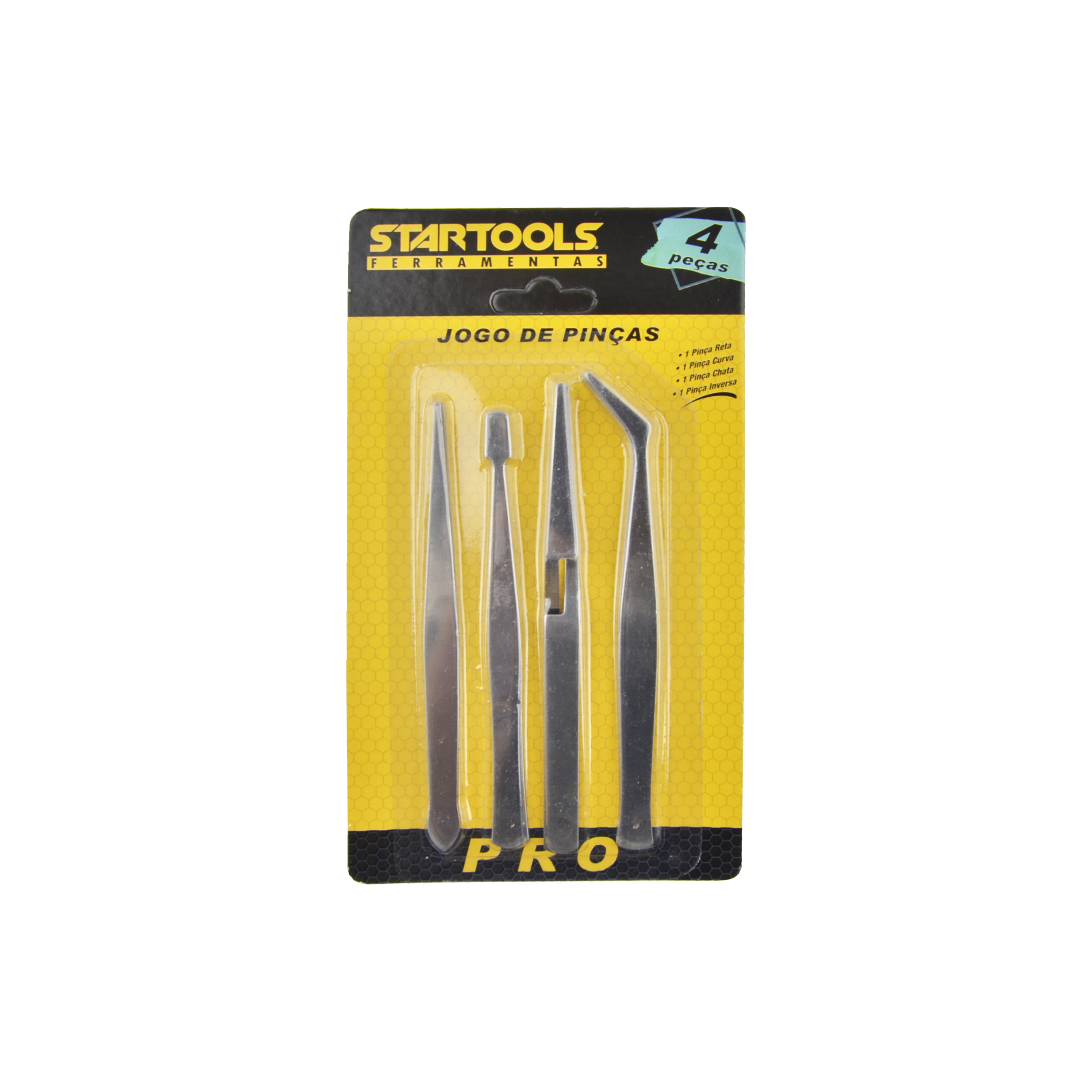 Kit De Pinça C/4pçs 11cm Metal Reta,curva,chata,invesa Startools