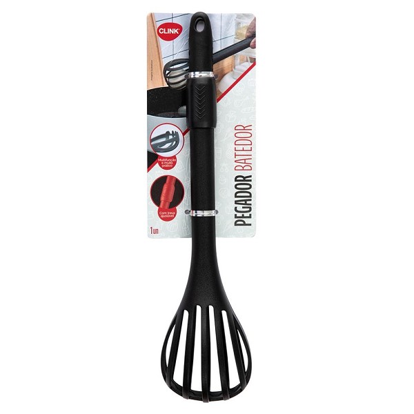 Pegador E Batedor De Ovos Plastico Preto E Vermelho 27x6,5x6,5cm Clink