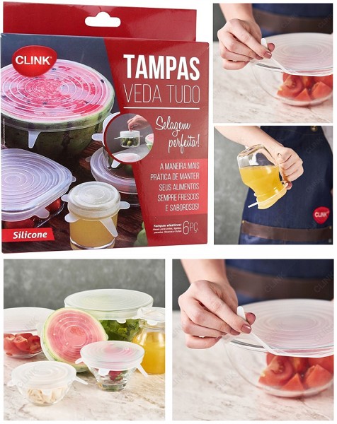 Kit C/6 Tampas Veda Tudo Silicone Transparente Clink