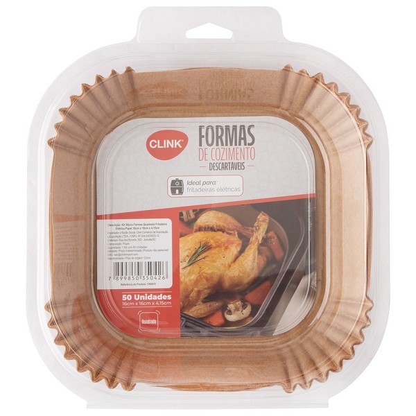 Kit 50pçs Forma Papel Quadrada P/fritadeira Elétrica P 16x16x4,5cm Clink