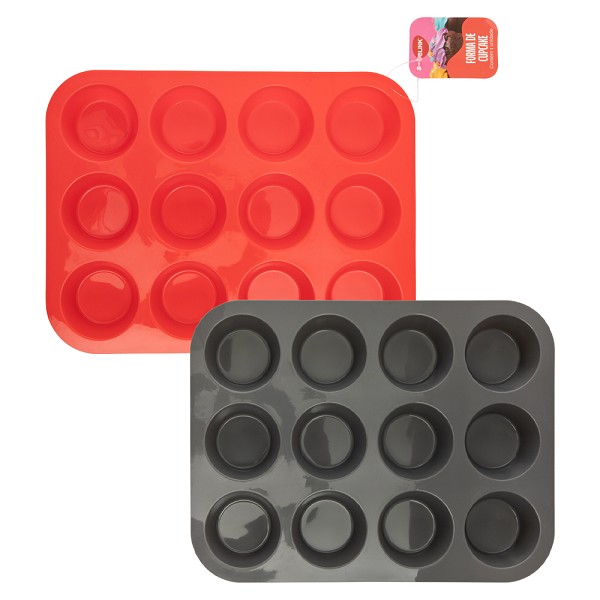 Forma 12 Cupcake 29x22x3cm Silicone Vermeho / Preto Clink