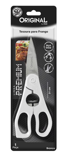 Tesoura Cozinha/frango 8'' C/cabo Branco 21cm Aço Inox Original
