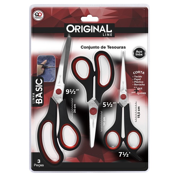 Conjunto Tesoura 3pçs Basic Aço Inox 9''24cm / 7''19,5cm / 5''14cm Original