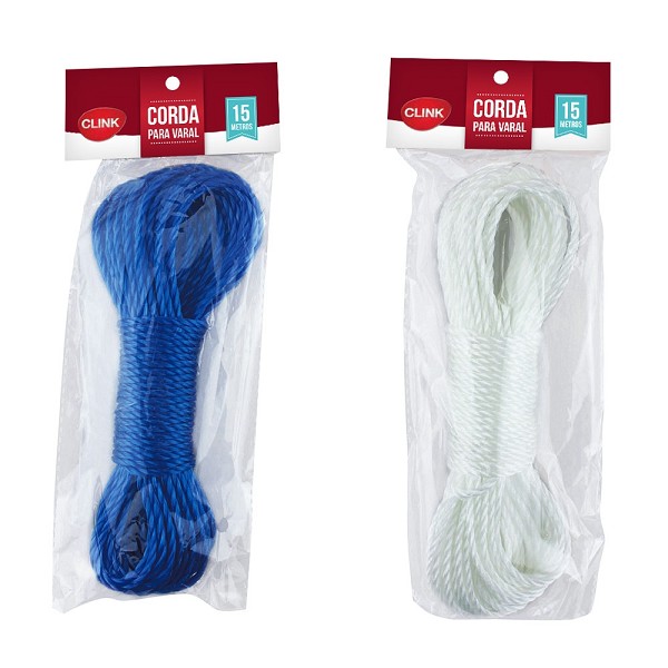 Corda Para Varal Poliéster 15mx3mm Branco E Azul Clink