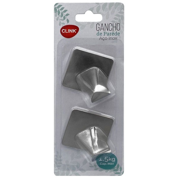 Gancho De Parede C/2pçs C/adesivo Suporta 1,5kg Aço Inox Clink