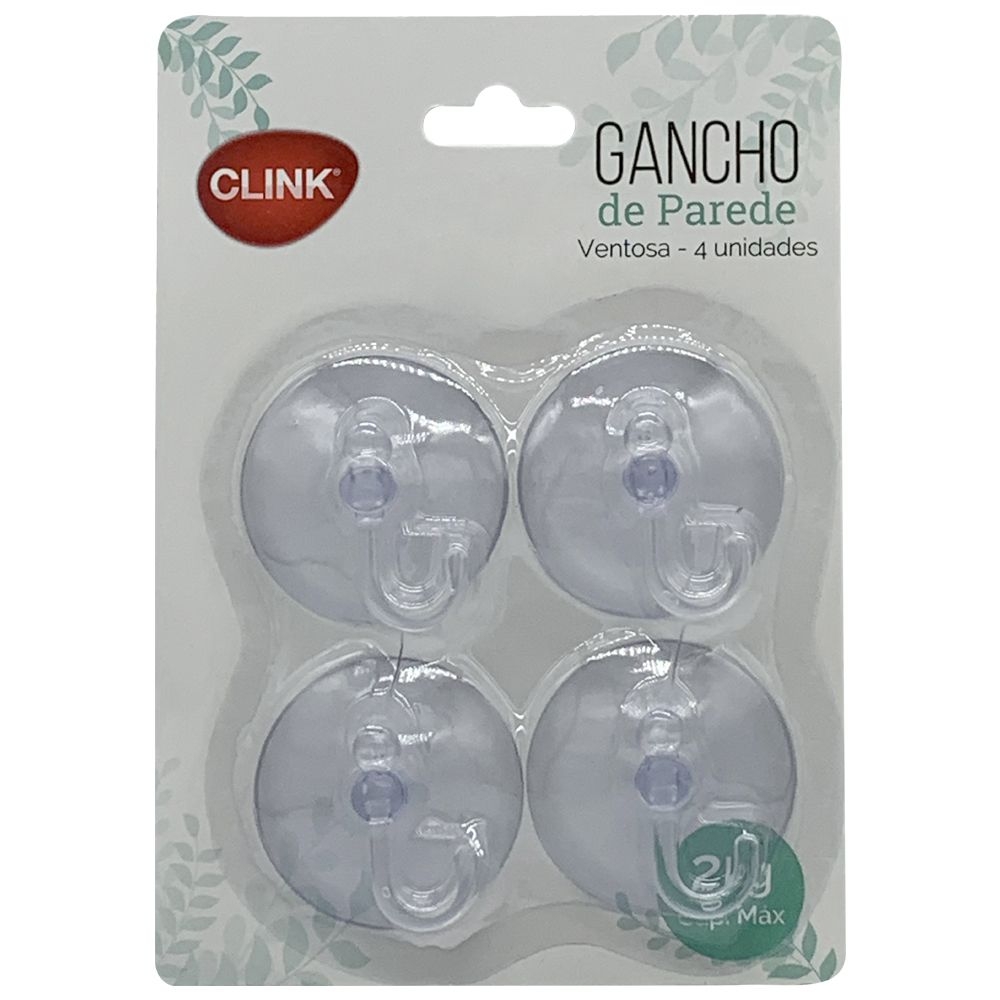 Gancho De Parede C/4pçs Ventosa Supoorta 2kg Plastico Clink