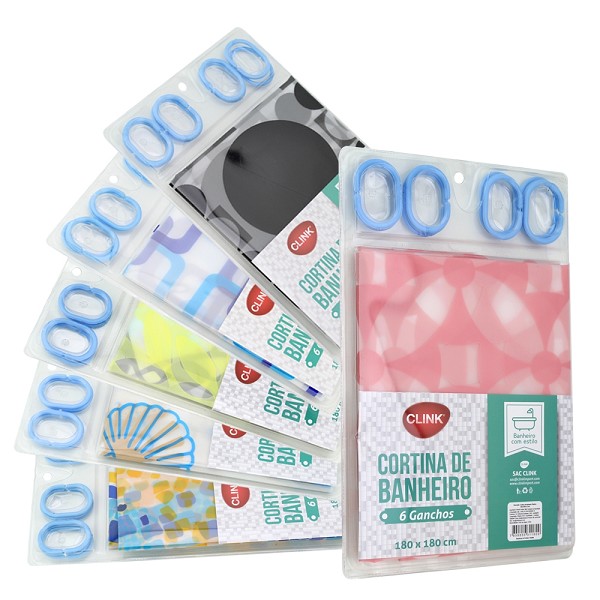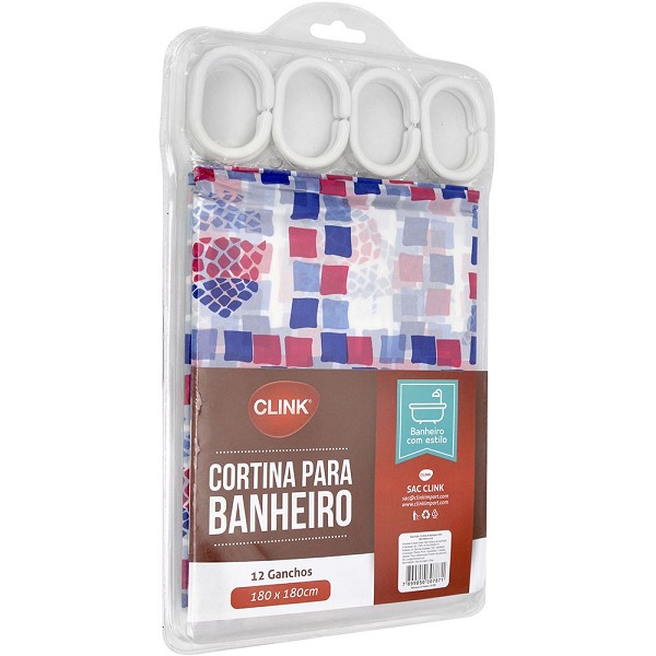 Cortina P/banheiro (vinil) 180x180cm Color C/12 Ganchos Clink