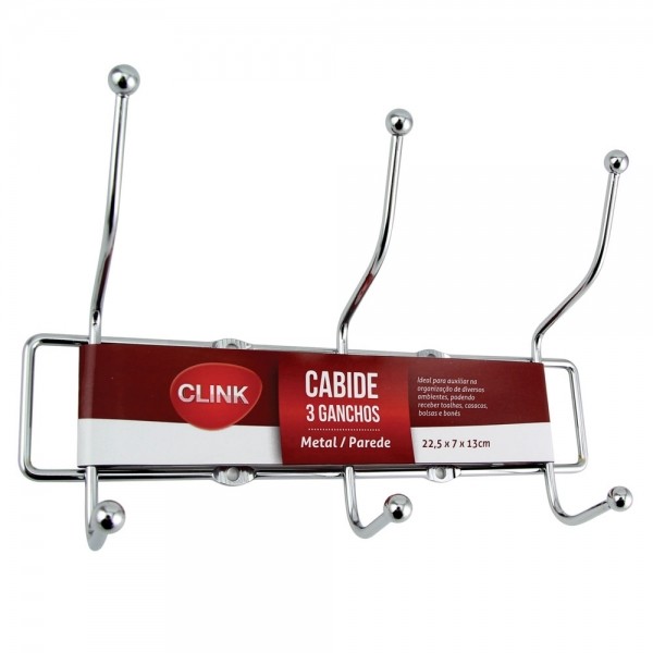 Cabide Metalico De Parede C/3 Ganchos 3,5x9,5x20,5cm Clink