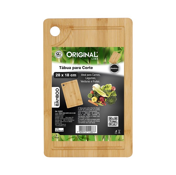 Tabua De Bamboo Retangular 28x18x0,8cm Media Original